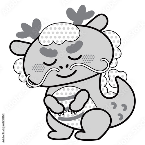 Obraz premium お辞儀するかわいい辰のイラスト素材 白黒