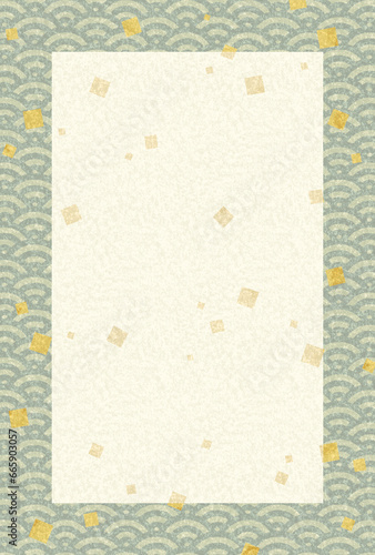 © Nakashige, Obraz premium 和風のフレーム・背景素材1(はがきサイズ・青海波・金箔)