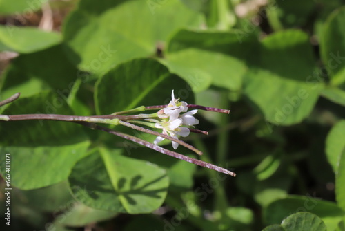 Fototapeta premium 春の野原に咲くタネツケバナの白い花