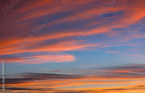 Fototapeta premium 柔らかな雲と鮮やかなオレンジとピンクの夕焼け空