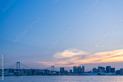 Obraz premium マジックアワーのレインボーブリッジと東京都心の都市風景