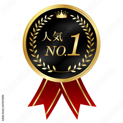 © KUU, Fototapeta premium メダル 王冠 リボン 金 アイコン
