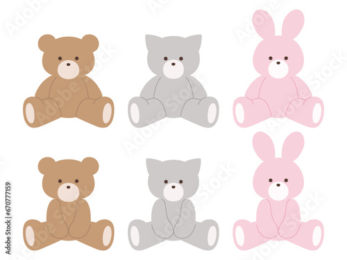 Obraz premium かわいいくまと猫とうさぎのぬいぐるみのベクターイラストセット