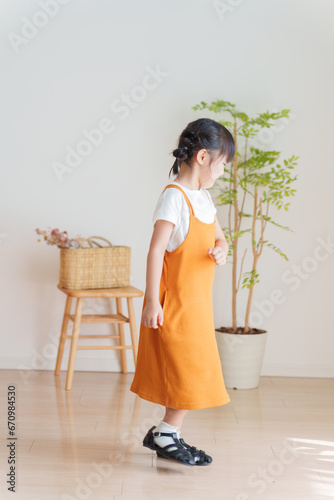 © polkadot, Obraz premium 子供の夏服秋服ファッションコーディネート全身(縦向き)