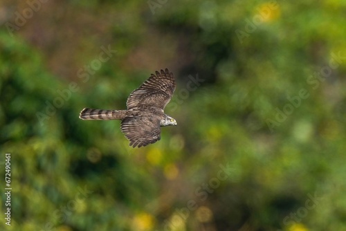 Obraz premium グリーンバックに悠然と飛ぶハイタカ