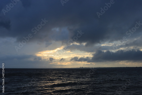 Fototapeta premium 台風が去ったあとの雲と海の夕暮れの湘南の風景