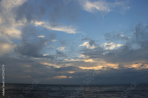 Fototapeta premium 台風が去ったあとの雲と海の夕暮れの湘南の風景