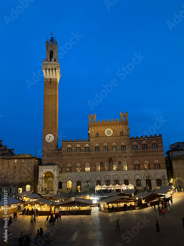 © Tida Zumi, Naklejka premium イタリア シエーナにあるカンポ広場の夜のバザール