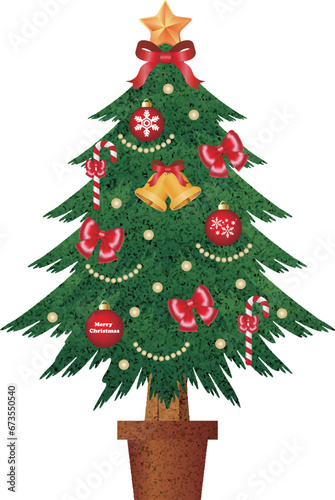 Obraz premium クリスマス クリスマスツリー オーナメント 飾り 装飾 アナログタッチ 水彩 イラスト素材