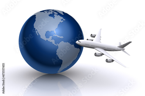 Fototapeta premium 地球と飛行機、ビジネスのグローバル戦略イメージ