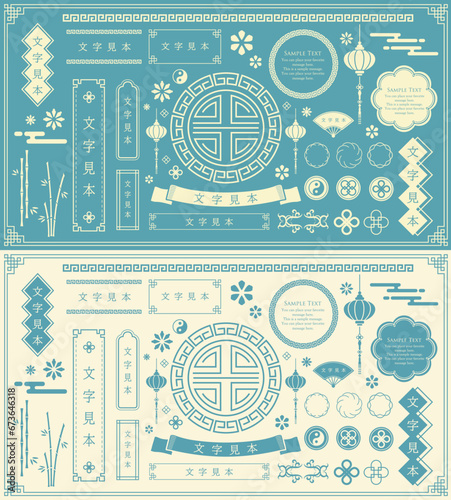 Fototapeta premium 中華モチーフのフレームデザインセット。中国の伝統的な装飾デザインのセット。