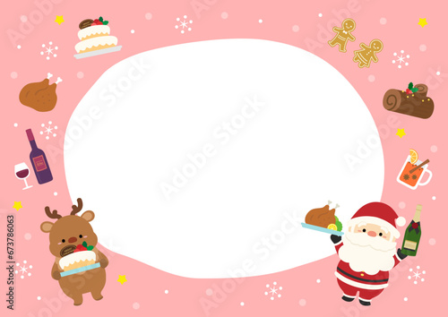 Obraz premium クリスマスのフレーム、サンタとトナカイと食べ物