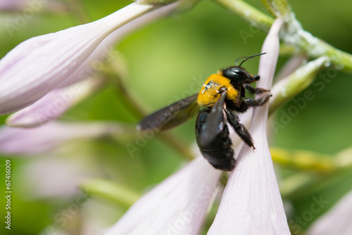 © hakase420, Fototapeta premium ギボウシにとまるクマ蜂