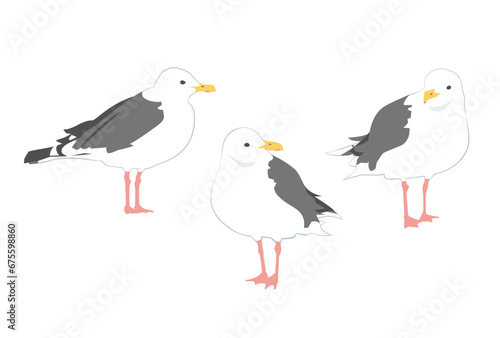 Obraz premium 色々な向きのオオセグロカモメのイラスト
