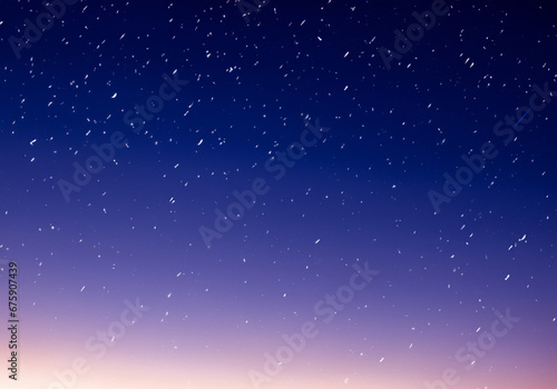 Obraz premium 雪が降る夜明け前の空 星が流れる静かな夜