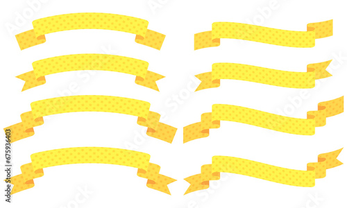 Obraz premium カーブのついたシンプルなドット柄のリボン8種セットのイラスト(黄色)