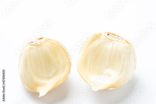 © midori_stock, Obraz premium にんにくの小房。(白バック)