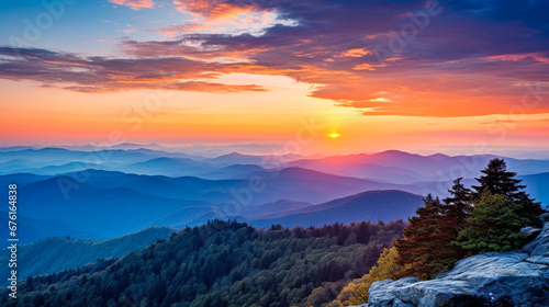 © Hanasaki, Obraz premium 夕日に染まる美しい山なみの風景