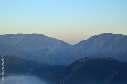 © So Takinoiri, Fototapeta premium 夜明け前の竹田城とその周辺の風景