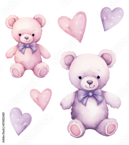 Obraz premium かわいいテディベアのパステルカラー水彩ベクターイラスト