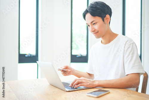 © HML, Fototapeta premium ノートパソコンでクレジットカード決済をする若い男性
