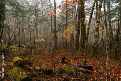 Obraz premium 霧の中の段戸裏谷原生林の秋