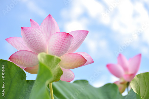 © masyok, Obraz premium 青空をバックに咲く古代蓮