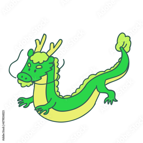 Obraz premium 緑色のシンプルなデフォルメの龍のイラスト