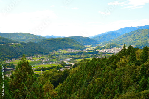 Naklejka premium 馬籠峠から木曽の街並み(長野県)