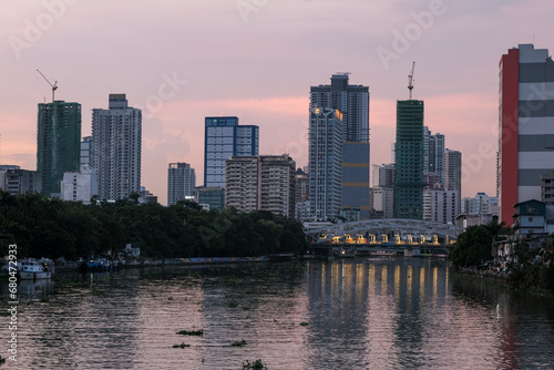 Fototapeta premium パシッグ川から見るマニラの日没の都市景観