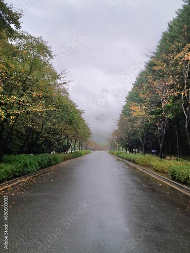 Fototapeta premium 비 오는 어느 가을 날 산책길