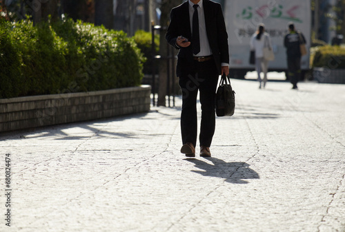 Obraz premium 朝の通勤時間の街で歩く男性サラリーマンの姿