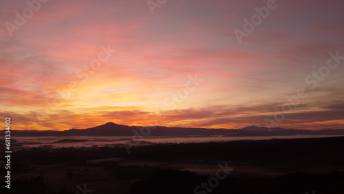 © あら~んどろ~ん, Fototapeta premium 牧草地から見る朝日