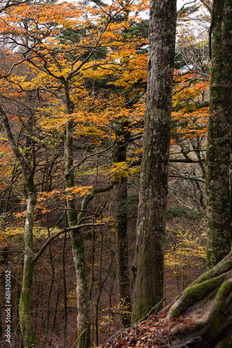 Obraz premium 紅葉する原生林 段戸裏谷原生林