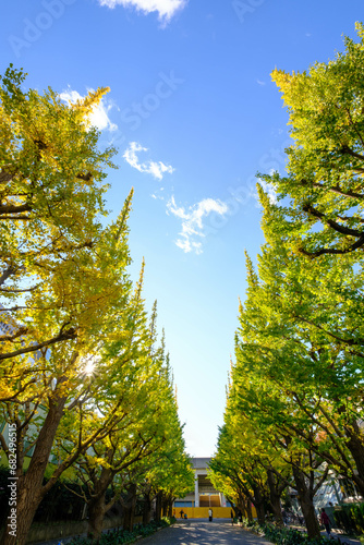 Fototapeta premium 明治神宮外苑の銀杏並木。11月の半ばに黄葉が始まった。