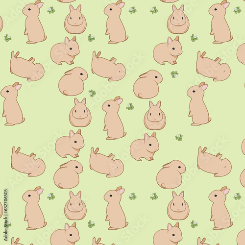 Obraz premium 茶うさぎとクローバー(黄緑色)