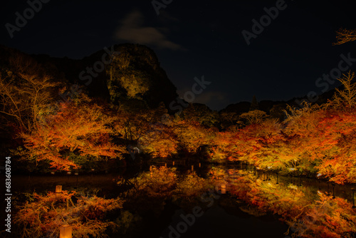 © hika, Fototapeta premium 池を囲むライトアップされた紅葉