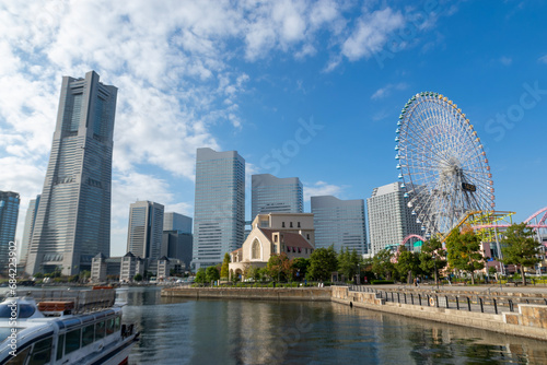 Obraz premium 横浜みなとみらいを象徴する建築物の見える風景