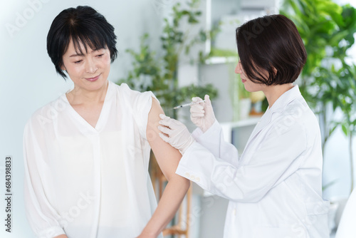 © taka, Obraz premium ワクチンの注射を受ける女性