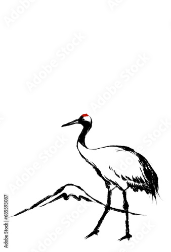 © eto itosawa, Obraz premium 歩く鶴と富士山のイラスト素材