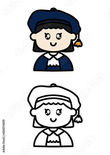© cha, Fototapeta premium 베레모 졸업식 학사모 캐릭터