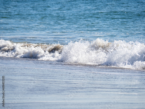 Fototapeta premium 青い海の砂浜の波打ち際。