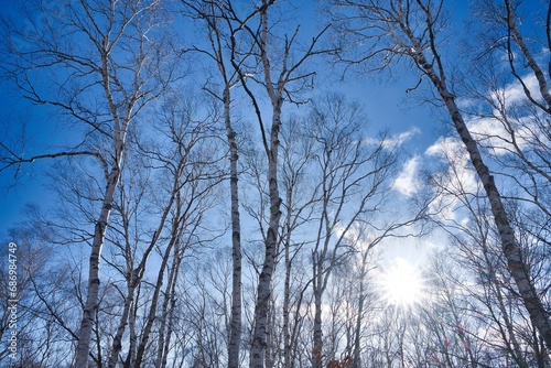 © Kaz asakawa, Fototapeta premium 白樺と太陽