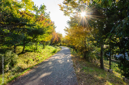 © 阿部 賢治, Naklejka premium 木漏れ日のある道