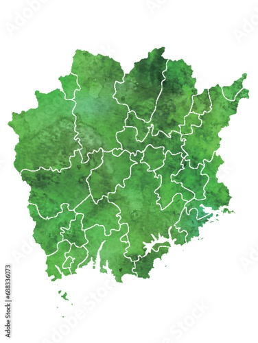 © KUU, Fototapeta premium 岡山 地図 水彩 緑 アイコン