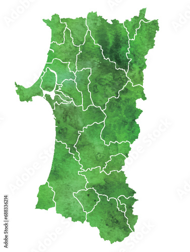 Naklejka premium 秋田 地図 水彩 緑 アイコン