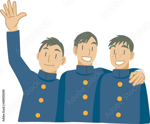 Naklejka premium 記念撮影で肩を組む男子学生たち