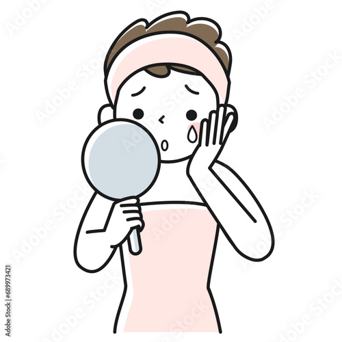 Obraz premium 手鏡を見て悲しむ若い女性の上半身