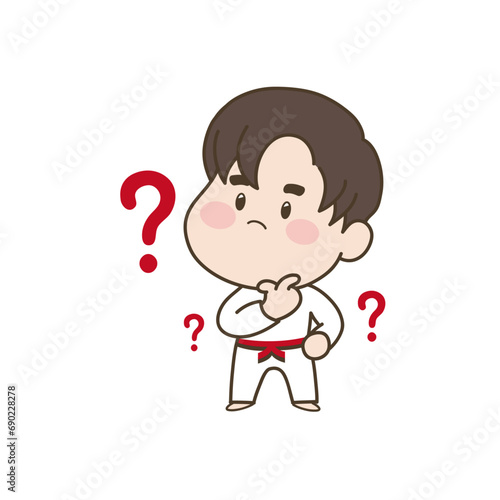 Obraz premium 생각중인 태권도 소년 캐릭터