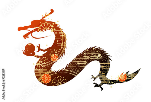 © Lily, Obraz premium 2024年 辰年 年賀状 シルエット イラスト